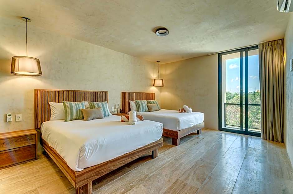 Nestled in Tulum’s La Veleta, this stylish escape blends easy access to the town center with a resort-like vibe. A rooftop plunge pool anchors the scene, while an outdoor pool offers another sunny spot to unwind. For privacy-minded travelers, several suites come with their own private pools, delivering a boutique, secluded retreat just steps from the action.